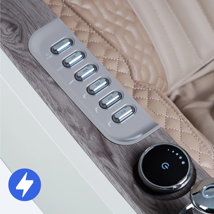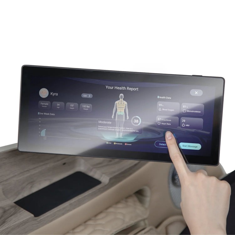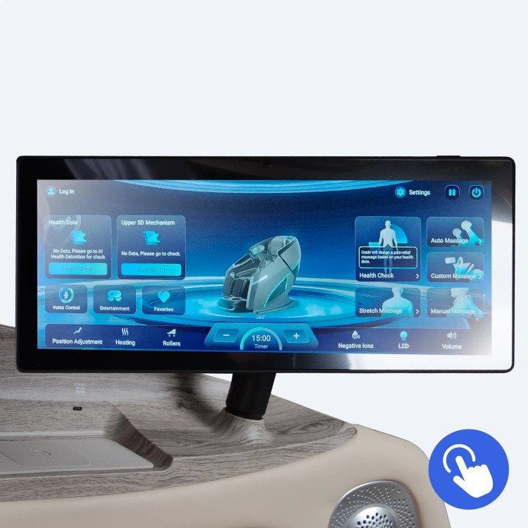 Sektör lideri dokunmatik ekran teknolojisiyle donatılan bu kontrol paneli, kullanıcılara masaj deneyimleri üzerinde üst düzey kontrol ve etkileşim imkânı sunar. Tüm ayarlara kolayca erişerek masajı tamamen kişisel tercihlerinize göre şekillendirmenizi sağlar.