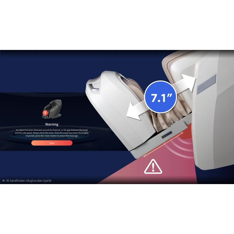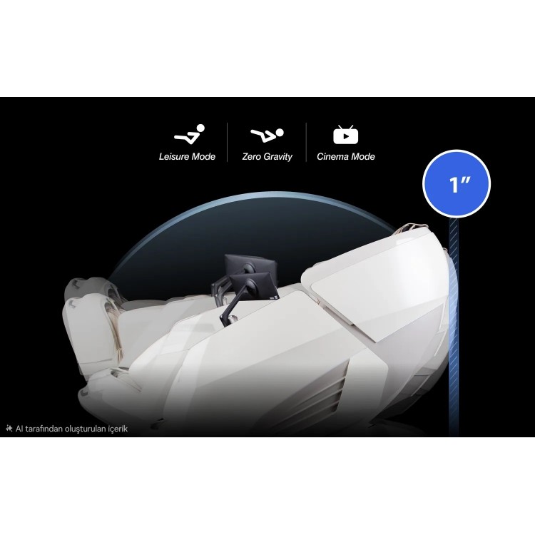 NASA’dan ilham alan Nirvana Pro Ai 4D + 5D, kullanıcıya gerçek anlamda ağırlıksız bir dinlenme hissi sunmak için 3 Aşamalı Sıfır Yerçekimi yatış sistemi ile tasarlanmıştır. Leisure Mode, Zero Gravity Mode ve Cinema Mode seçenekleriyle vücudu ideal pozisyonda destekleyerek maksimum konfor sağlar. Ayrıca Alan Tasarrufu Teknolojisi sayesinde koltuk, duvardan yalnızca 2,5 cm (1 inç) uzaklıkta konumlandırılsa bile tamamen yatış pozisyonuna geçebilir.