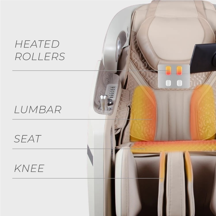 Nirvana Pro Ai 4D + 5D, gelişmiş ısıtma teknolojisiyle sırt, bel, oturma alanı ve diz bölgelerine hedefli sıcaklık uygular. Bu kontrollü ısı dağılımı kas gerginliğini azaltır, gevşemeyi hızlandırır ve genel rahatlama seviyesini artırır.