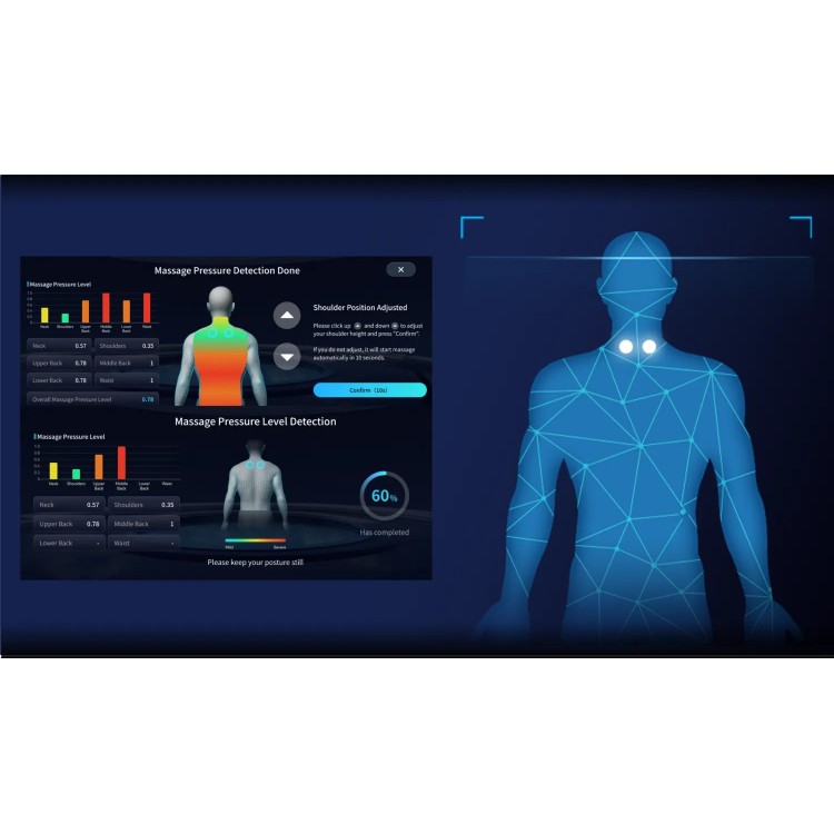 Nirvana Pro Ai 4D + 5D, akıllı masaj basıncı ve omuz konumu algılama sistemi sayesinde vücudunuzun ölçülerine, hatlarına ve ideal masaj basınç seviyenize otomatik olarak uyum sağlar. Size özel ayarlanan bu sistemle, tamamen kişiselleştirilmiş bir masaj deneyiminin keyfini çıkarın.